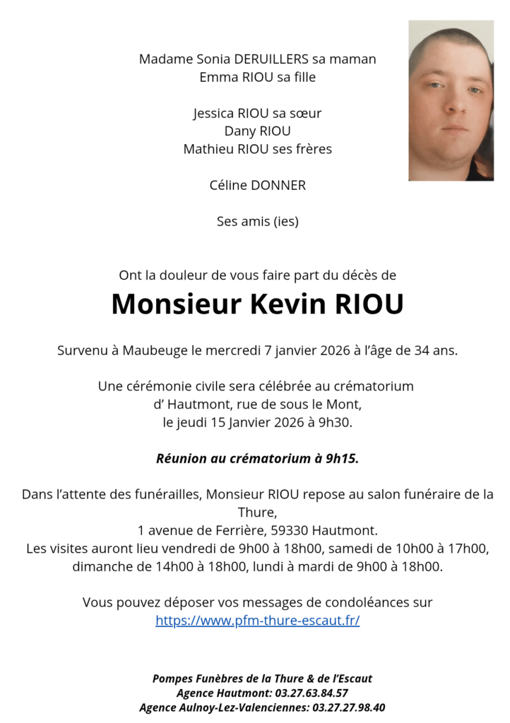 Sincères condoléances à ses parents et sa famille. Je suis de tout cœur avec vous. Domie ( Nous étions voisins au bloc Avocatier à Hautmont) Répondre