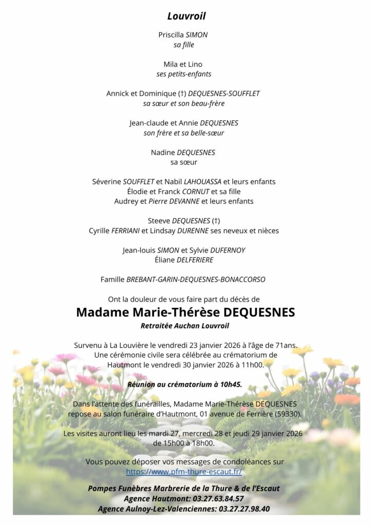Je n’oublierai jamais les moments passés avec Marie-Thérèse Dequesnes.